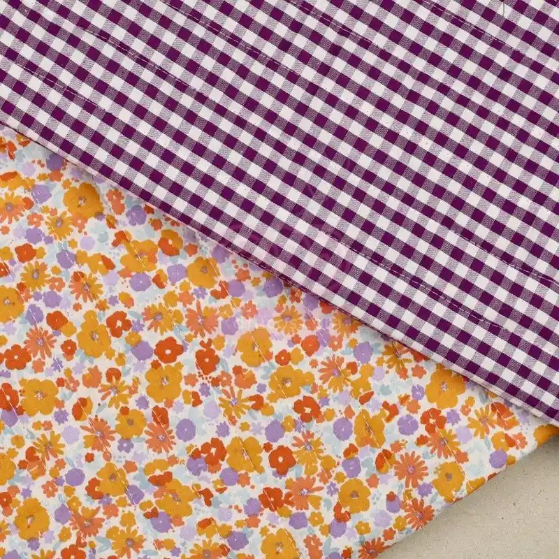 Tela acolchada con estampado floral y revés de cuadros vichy.