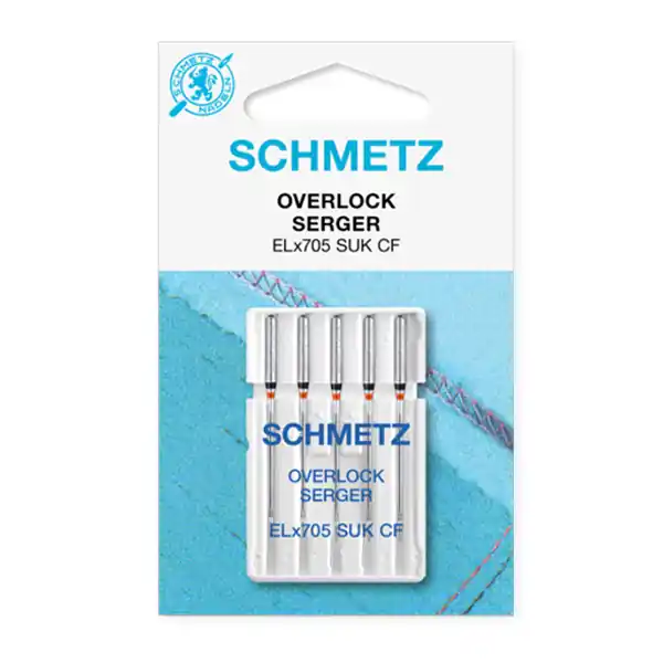 Agujas Máquina Overlock SUK Schmetz. Estas agujas máquina Overlock SUK , pertenecen a la prestigiosa y reconocida marca de agujas para máquina Schmetz. Están diseñadas para su uso en remalladoras que realizan puntadas Overlock.