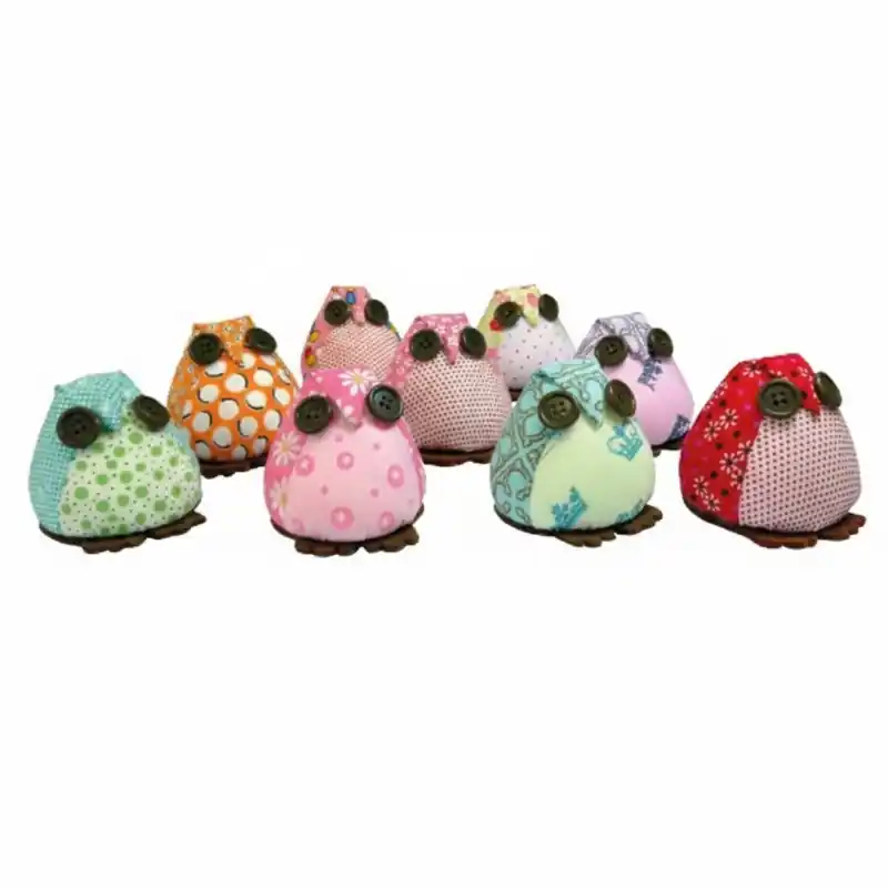 Este alfiletero magnético ofrece una solución práctica y estética para la gestión de herramientas punzantes en el taller de costura. Su característica principal es la base imantada integrada en el cuerpo del búho, la cual posee la fuerza suficiente para atraer y sujetar firmemente alfileres, agujas y pequeños clips metálicos, facilitando el acceso rápido mientras se trabaja. El exterior está recubierto de tela de algodón con diversos estampados (flores, lunares, cuadros), y presenta detalles decorativos como ojos de botón y patas de fieltro. Debido a la variedad de tejidos utilizados en su fabricación, el producto se sirve en modelos surtidos, garantizando una pieza única y decorativa. Es una herramienta esencial para mantener el orden y la seguridad en proyectos de patchwork y labores creativas.
