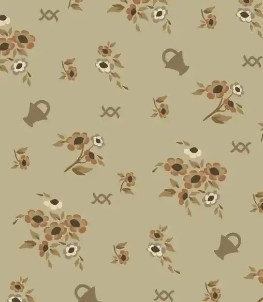 Algodón americano de fondo verde oliva con flores en tonos marrones, todo ello en tonos empolvados