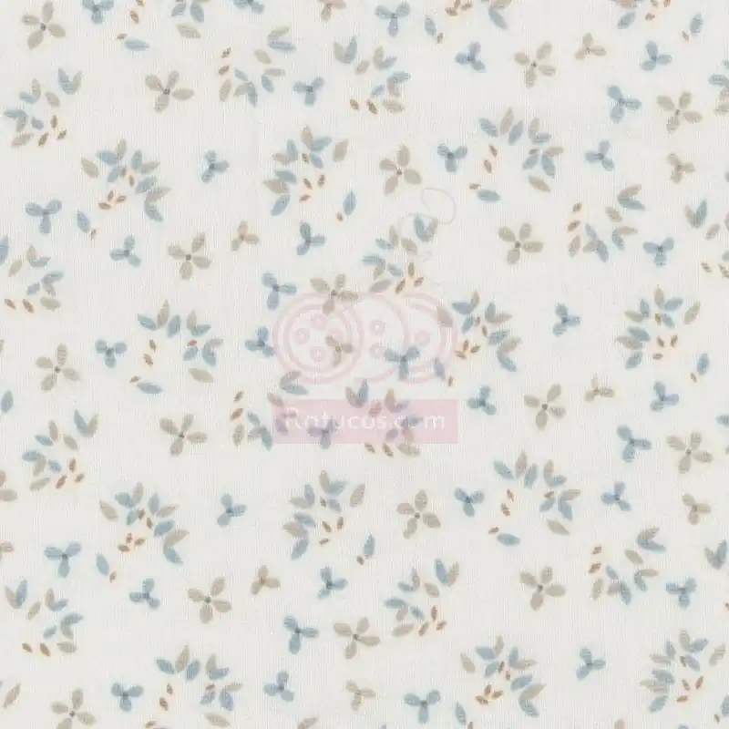 Tela de doble gasa bámbula de algodón, con estampado de pequeñas hojas.