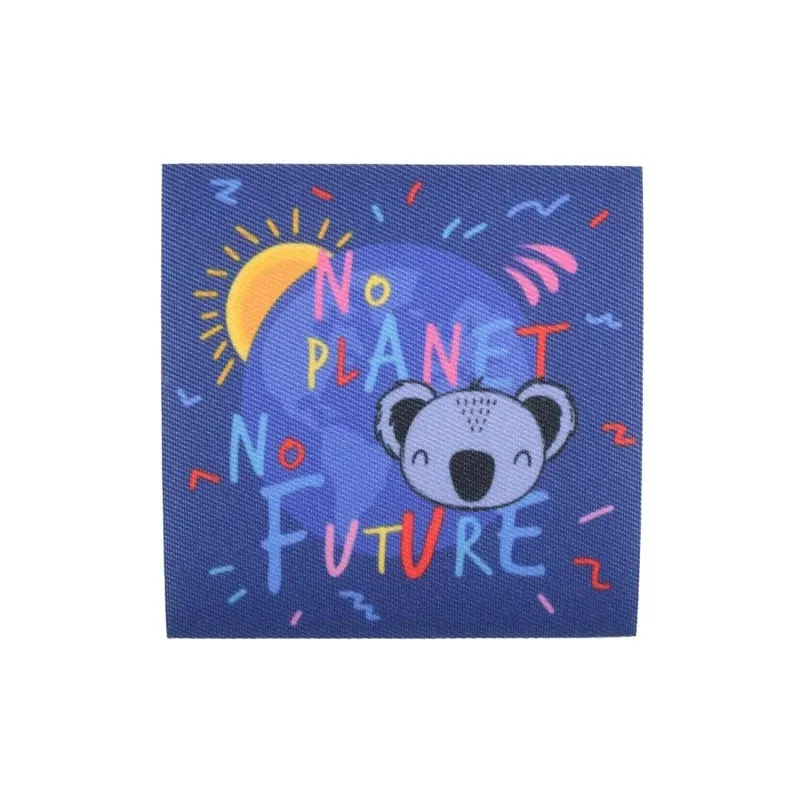 Aplicación o parche termoadhesivo cuadrado con la frase «No Planet, No Future». Mide 7.5cm por cada lado. Esta aplicaicón infantil es perfecta para customizar o reparar todo tipo de prendas o accesorios. Ideal para pegar sobre cualquier pantalón, camiseta, chaqueta… Es una aplicación muy fina, con una impresión de alta calidad. Se pega sobre cualquier tejido aplicando calor con la plancha durante unos segundos.