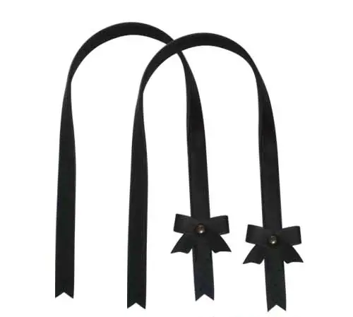 Asas Cuero Sintético Lazo – Ideas. Este juego de 2 asas de cueros sintético con lazos son ideales para bolsos de patchwork, punto o ganchillo. Con ellas darás ese toque especial a tus proyectos.