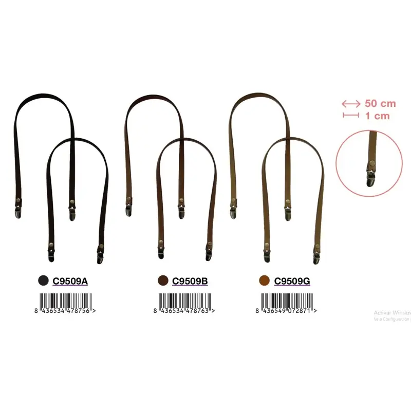 | 2 | C9509B | Asa plana de piel con pinza 50 cm | Marrón |