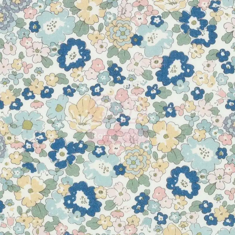 Tela de batista, tejida con 100% algodón y estampada con pequeñas flores.