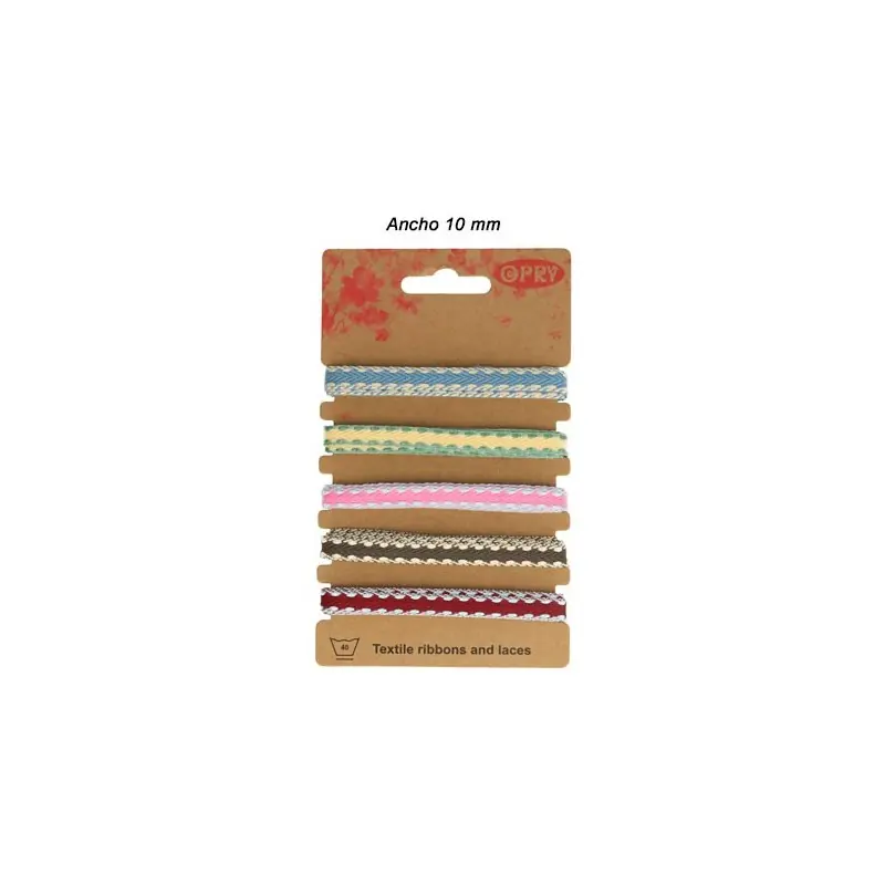 Tapacosturas algodon10mm (Blister). Presentacion 5 colores surtidos x 1 metro.