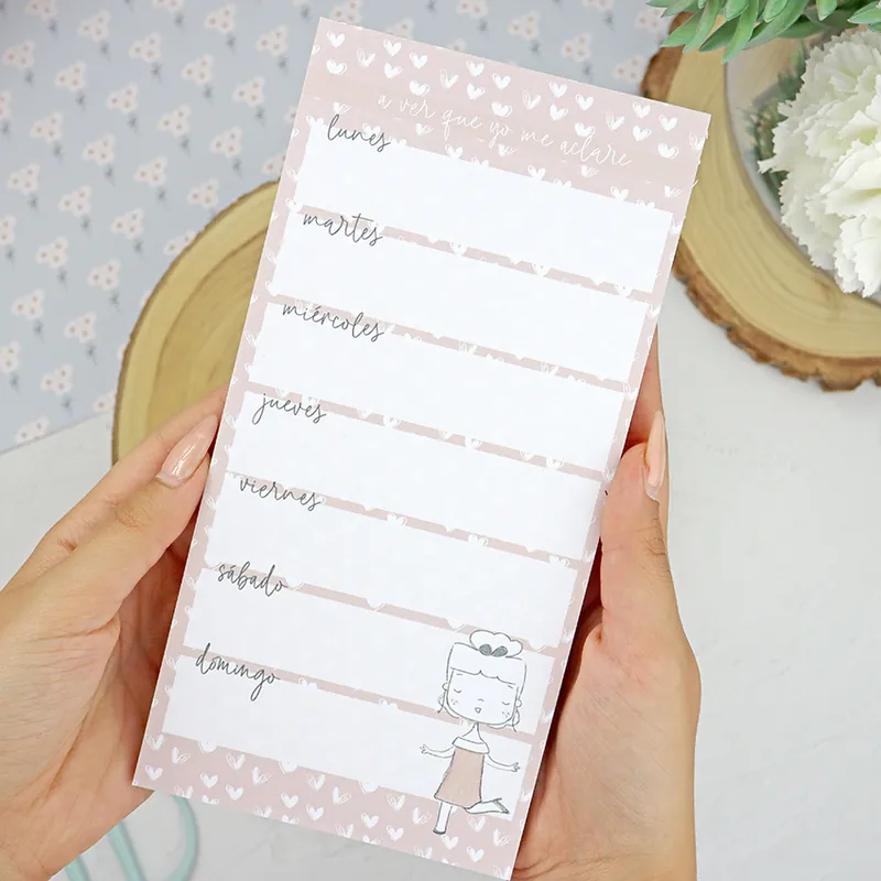 Los blocs de notas XL llevan 60 hojas de papel de alto gramaje, con mis ilustraciones y diseños, y una cartulina en la base. Y están creados a juego con mis colecciones y organizadores.