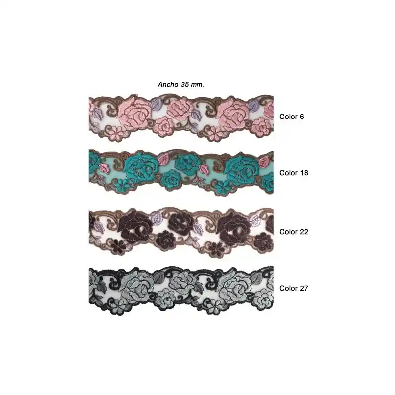 Bordado guipur rayon sobre tul flores ancho 35mm. (Metros)