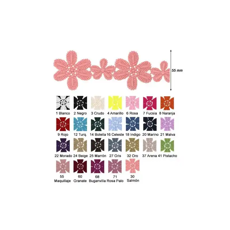 Bordado guipur ancho 55mm 100% poliester. (Metros)