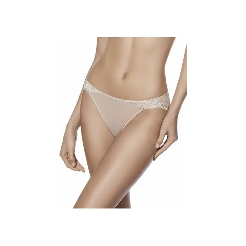 La Braga modelo Irina de Selene es la definición de feminidad y ligereza. Diseñada con un corte bikini de talle bajo, esta prenda es ideal para quienes prefieren una cobertura más escotada sin renunciar al estilo. Su atractivo principal reside en la combinación de texturas y transparencias: la parte central delantera está elaborada en un fino tul que insinúa sutilmente, mientras que la cintura y los laterales se adornan con una sofisticada pieza de encaje floral elástico que se adapta con suavidad al cuerpo.