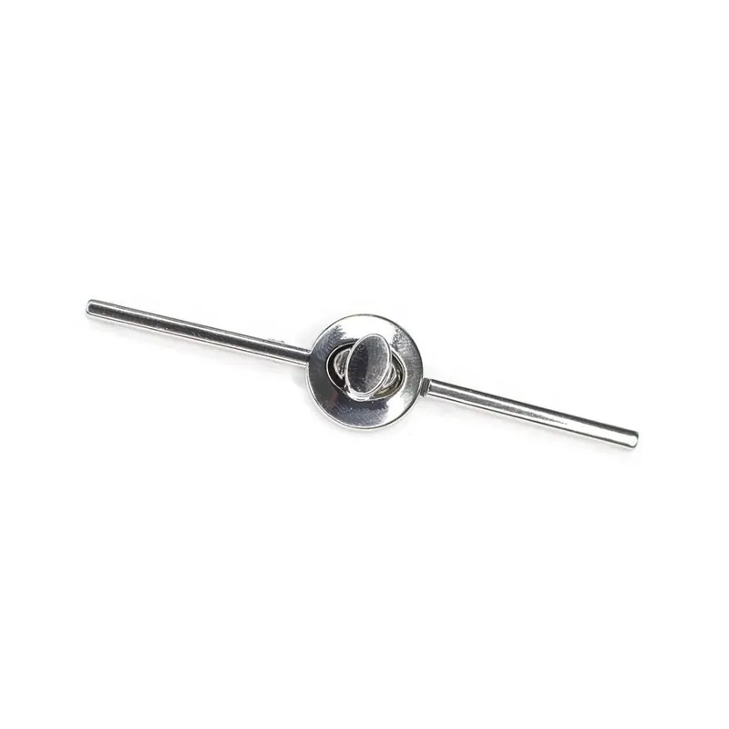 Elegante broche metálico para chaqueta en color plateado, con un diseño único compuesto por dos partes que confluyen en un círculo central, aportando un toque sofisticado y distintivo. Con unas dimensiones de 8 cm de largo y 1,5 cm de ancho, se cose fácilmente a cualquier tejido, asegurando una fijación firme y duradera. Su acabado refinado lo convierte en un complemento ideal para embellecer chaquetas, abrigos y otras prendas con un detalle original y elegante.