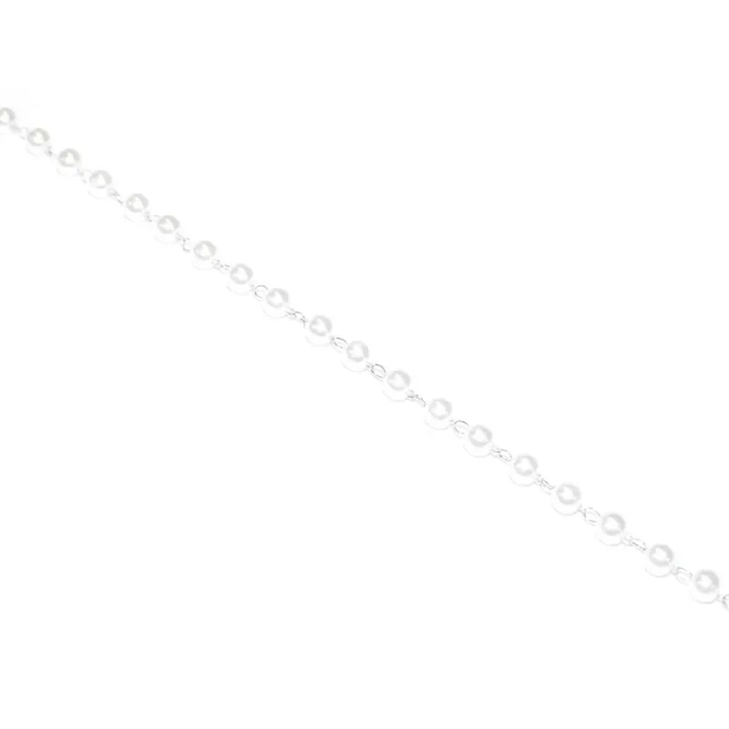 Esta elegante cadena de perlas plateadas, con cada perla de aproximadamente 6 mm, es perfecta para añadir un toque de sofisticación a cualquier proyecto. Ideal para decorar prendas, accesorios, manualidades o incluso en la decoración de eventos. El sutil brillo de las perlas plateadas realza tus creaciones con un acabado refinado y delicado. Precio por metro, para que puedas adquirir la cantidad exacta que necesites. ¡Haz que tus diseños brillen con esta encantadora cadena de perlas!