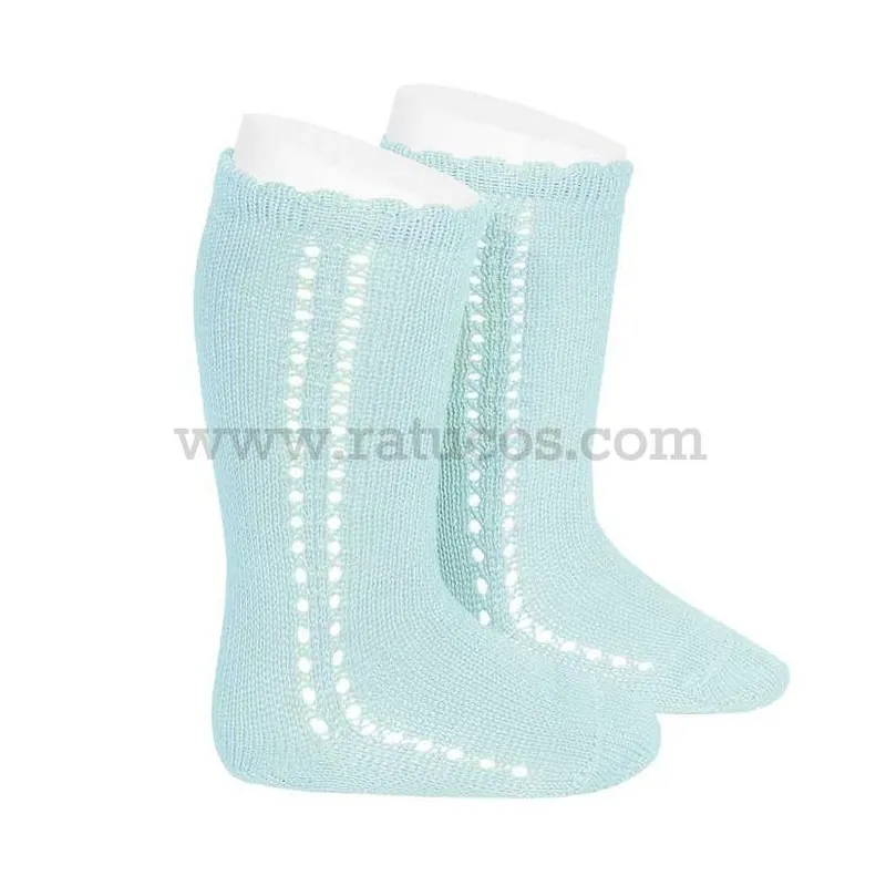 CALCETIN ALTO AGUAMARINA PERLE CALADO LATERAL De Moda