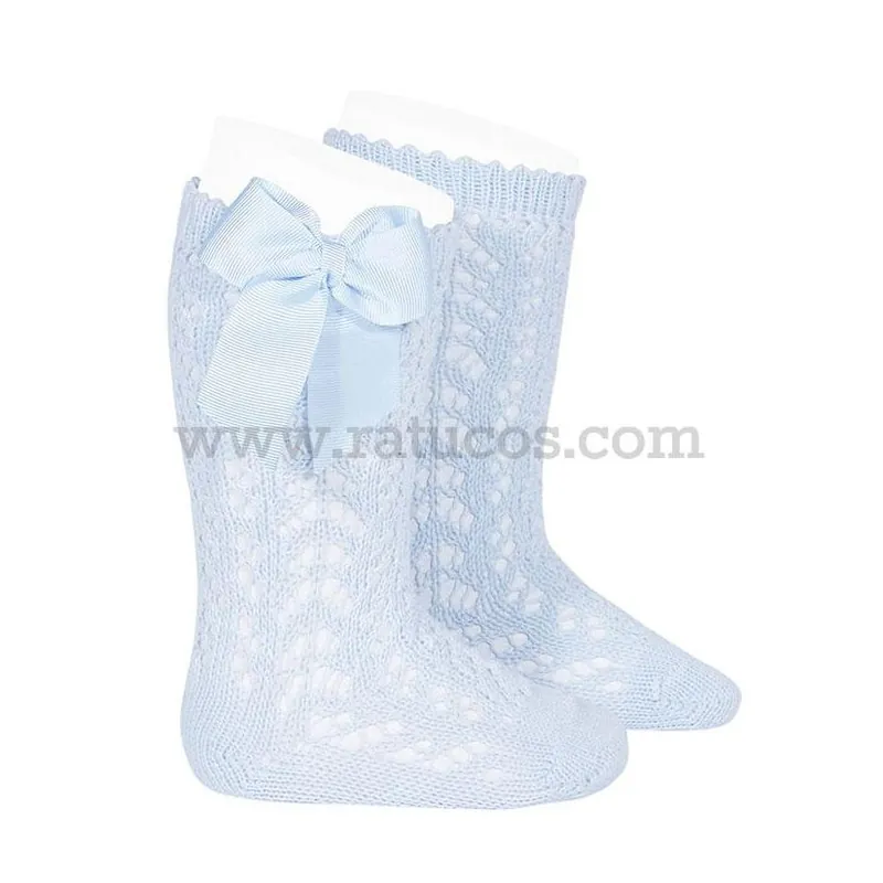 Calcetín de algodón alto con calado y lazo lateral de grogrén.