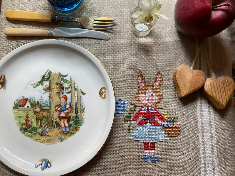«Caterina» es un esquema de punto de cruz contado en color, ideal para decorar manteles individuales y toallas decorativas del hogar.