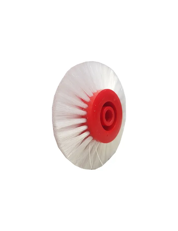 Cepillo redondo para máquina con cerdas de nylon fuertes. Se usa para la limpieza y eliminación de restos de cola en la fabricación de calzado. Medidas 80mm de diametro, eje central de 10mm.