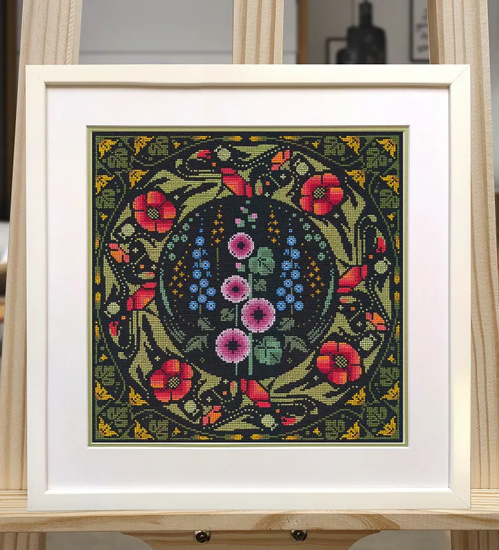 Descubre la belleza del arte clásico con el kit de punto de cruz OVEN 1690 – Multicolored. Inspirado en motivos florales ornamentales, este diseño combina colores intensos y un fondo negro que resalta cada detalle, creando una pieza elegante y sofisticada, ideal para los amantes del bordado artístico.