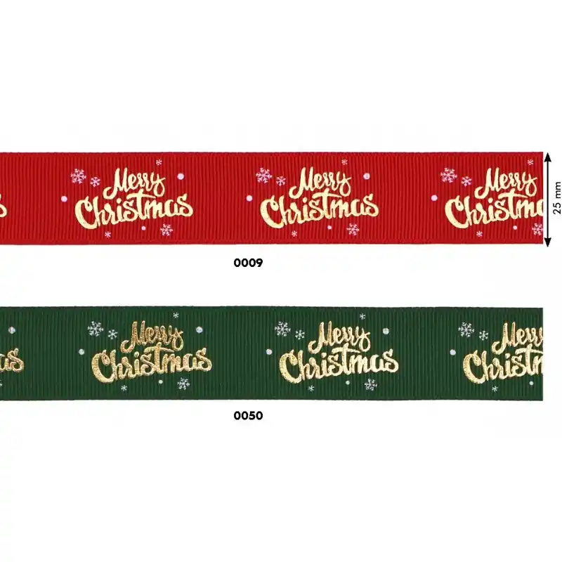 La Cinta Grosgrain Navideña «Merry Christmas» 2,5cm es una cinta decorativa de 25mm de ancho, ideal para la temporada festiva. Se caracteriza por su distintiva textura acanalada y un elegante estampado dorado del mensaje «Merry Christmas» flanqueado por copos de nieve. Disponible en Rojo y Verde, esta cinta es perfecta para añadir un toque brillante y tradicional a tus creaciones de confección, decoración del hogar, patchwork y manualidades.