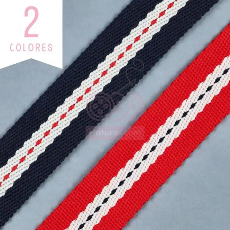 Cinta de nylon para mochilas o bolsas con una greca central.