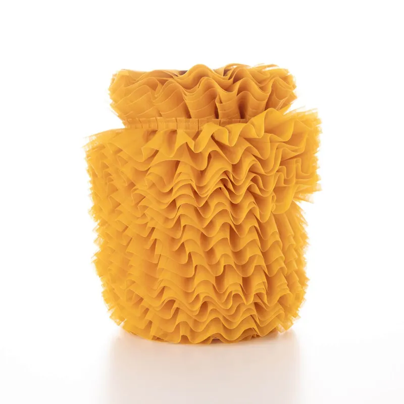 Con un ancho aproximado de 6 cm y fabricada en 100% poliéster, su fruncido en tablas en la parte superior añade volumen y estructura, ideal para realzar volantes, faldas y detalles decorativos.