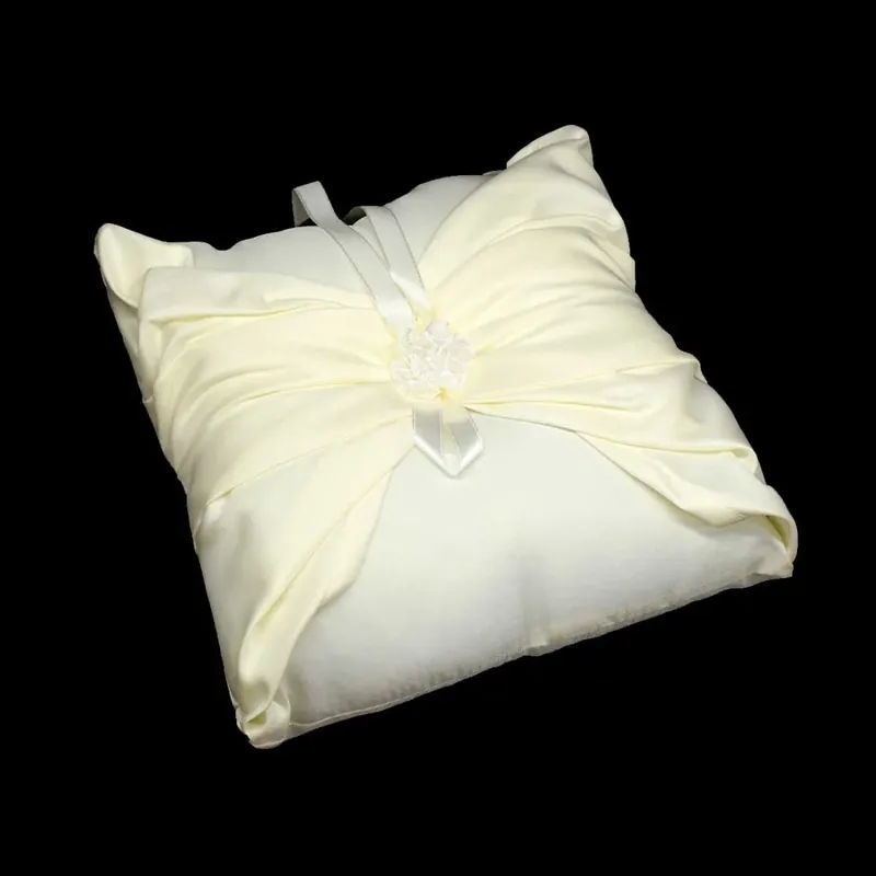 Este cojín en forma de corazón es perfecto para poder llevar las alianzas en una boda. Podrás atarlas a sus dos lazos. Con dos frunces que quedan muy vistosos sobre el cojín. Mide 19cm de largo y 19cm de ancho. Disponible en color blanco y color crudo. Este cojín se convertirá en un complemento perfecto para tu ceremonia.