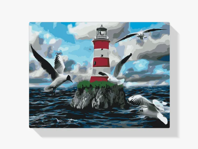 Compra Ahora Pintura Diamante – Faro y gaviotas blancas y rojas