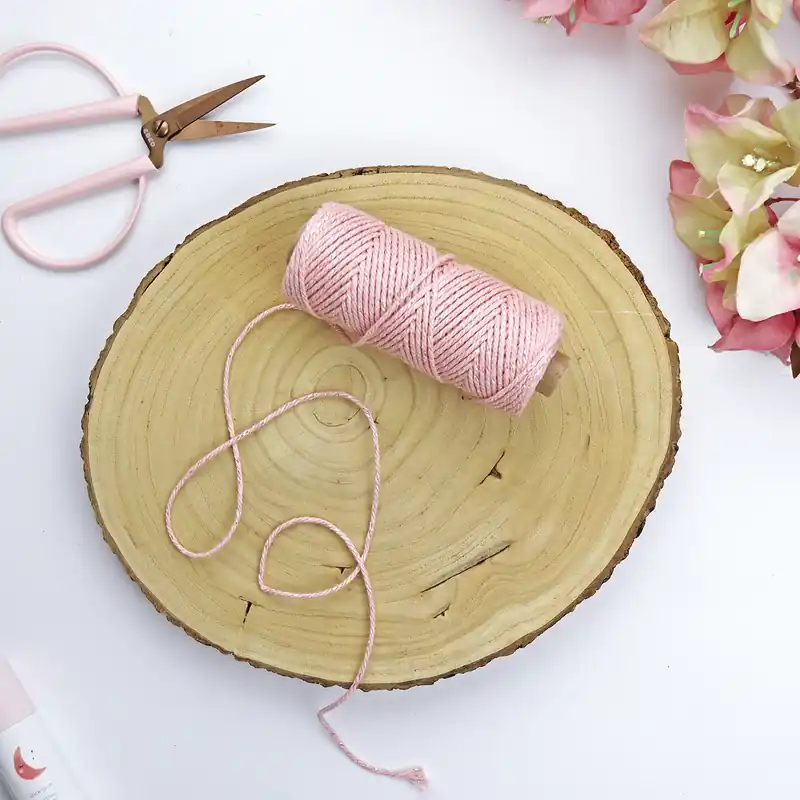 El cordón Valentina Rosa es una bobina que contiene 50 metros de cordón de 3 mm de grosor. Es un cordón grueso de algodón rosa suave e hilo iridiscente entretejido. Muy mágico y especial.