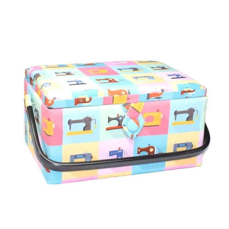 Este costurero con un encantador estampado de máquinas de coser es la solución perfecta para mantener tus herramientas de costura organizadas y siempre a mano. Disponible en dos tamaños, grande (25,5×18,5×14 cm) y pequeño (23,5×15,5×10 cm), ofrece el espacio ideal para guardar hilos, agujas, tijeras y otros accesorios esenciales. Su diseño con máquinas de coser le aporta un toque vintage y único, convirtiéndolo en un accesorio tanto funcional como decorativo. Perfecto para cualquier aficionado a la costura que quiera mantener su espacio en orden con estilo.