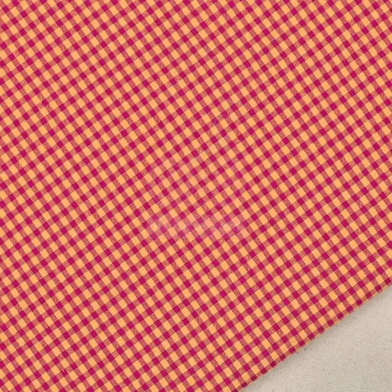 Tela de cuadro vichy seersucker bicolor en color, en color jengibre y fruta del dragón.