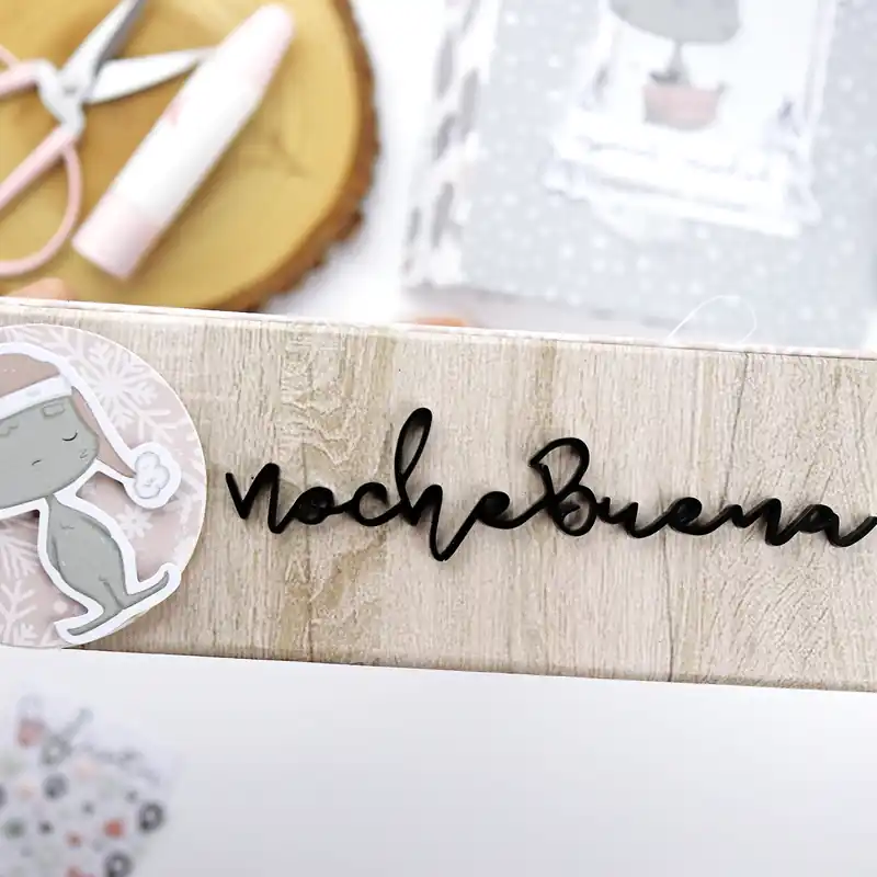 He creado el adorno palabra NocheBuena en metacrilato negro para lucir en la portada de tu proyecto o colgarlo del lomo con ayuda de una cadena de bolitas. Especial para proyectos navideños.