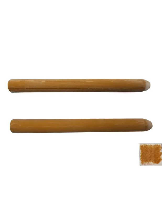Ceras para reparar desperfectos en pieles. Ideal para zapatos, bolsos, tapicería, y cualquier artículo de piel. Diseñadas específicamente para el tratamiento de la piel. Para su uso se debe fundir con calor y despues aplicar con espátula sobre el desperfecto de la piel. Una vez seco aplicar reparador al tono exacto de la piel. Color ocher brown 8001/11.