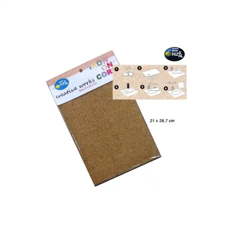 Tejido Corcho termoadhesivo Linea Creative works (21×29,7cm) especial para todo tipo de manualidades. Presentacion bolsa con colgador.