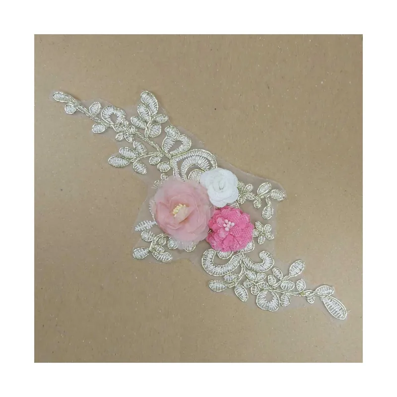 Disponible Ahora Aplicación bordada flores variadas rosa 9x24cm – Rosa 12