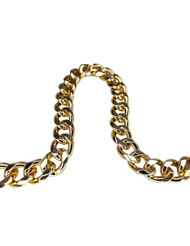 Cadena de aluminio biselaso con 6 caras bañada en color oro de alta calidad.