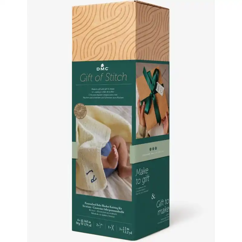 El Kit Tricot DMC – Manta de Bebé Personalizable es un regalo atemporal y lleno de cariño para dar la bienvenida a un recién nacido. Esta manta, con un encantador toque vintage y en un relajante tono neutro, se integra perfectamente en cualquier habitación infantil o dormitorio contemporáneo. La clave de este kit es la personalización: incluye hilo de bordar Mouliné Spécial® para añadir una inicial, un nombre o una fecha especial, convirtiendo la manta en un recuerdo único. Desarrollado como parte de la gama «Gift of Stitch» de DMC, este kit es versátil: puede tejer la manta usted mismo para ofrecerla como un adorable regalo hecho a mano, o puede regalar el kit completo a un ser querido para que disfrute del placer de crear. El kit contiene todo lo necesario para comenzar: cuatro ovillos de 50g de lana (55% Nylon, 45% Acrílico), un par de agujas de tricot de 4mm, tres madejas de 2m de Mouliné Spécial® 100% algodón, una aguja lanera para remates, una aguja de bordado para la personalización, e instrucciones claras paso a paso disponibles en varios idiomas (EN, FR, SP, DE, IT). Además, para facilitar el proceso de regalo, se incluye un lazo y una etiqueta de regalo que se puede bordar, y la caja del kit es reutilizable como envoltorio, completando un presente considerado y sostenible. La manta terminada tiene unas dimensiones aproximadas de 70 x 70 cm.