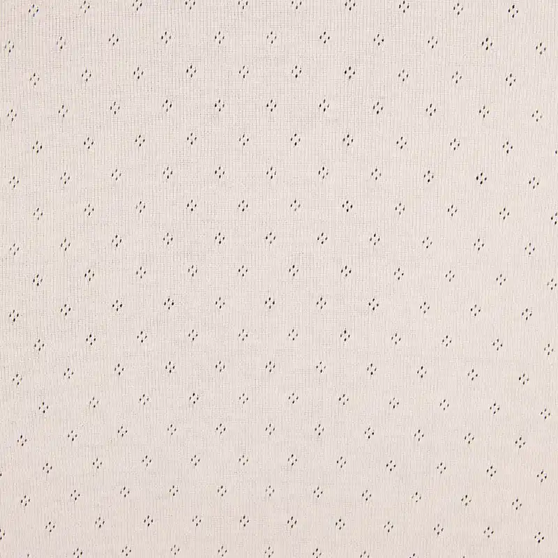 Punto suave de canalé perforado 100% algodón color Crudo. Tela de punto acanalado con un delicado dibujo calado punteado.