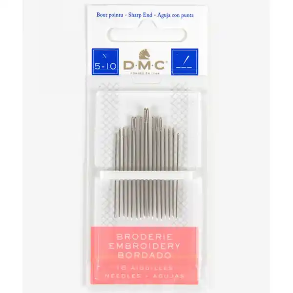 Estas agujas de DMC para bordar variadas son del Nº 5 al 10. Estas agujas están fabricadas en acero niquelado. El acero es un metal muy resistente por lo que las agujas son más resistentes. Además cuentan con un ojo alargado para facilitar el enhebrado de las mismas con cualquier hilo de bordado y acaban en punta. Aunque son propias de bordar, también se pueden utilizar en otros trabajos como tapestry o costura.
