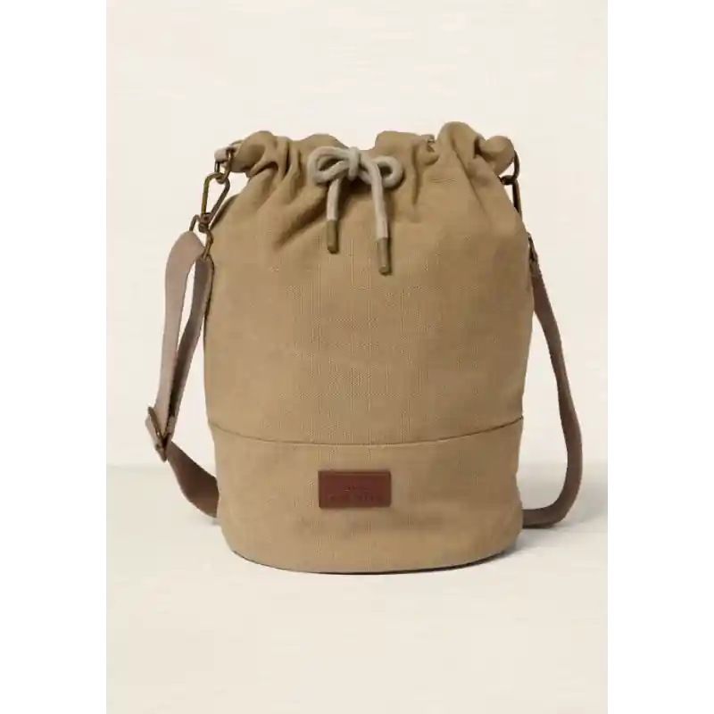 Lleva contigo tus proyectos favoritos y haz manualidades sobre la marcha con este original bolso sostenible Nomad. Este elegante bolso de color caqui tiene una correa ajustable para el hombro y un cierre de cordón reforzado con un broche magnético.