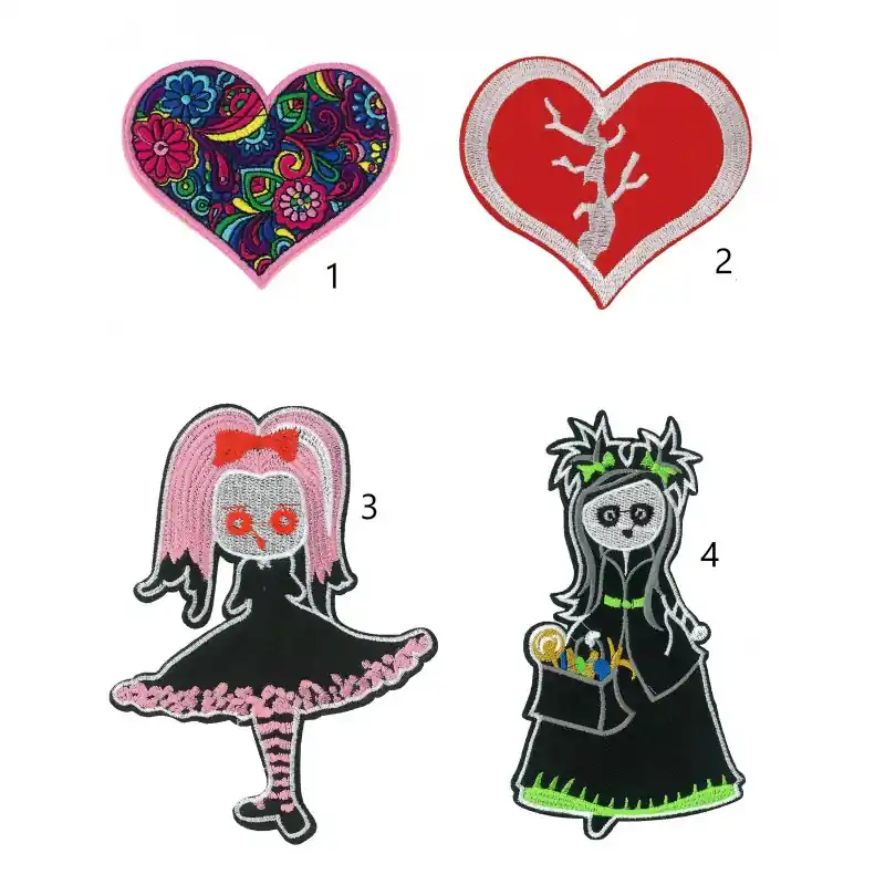 Los apliques bordados termoadhesivos de la serie Corazón F50 son el elemento perfecto para añadir un toque de originalidad y estilo a tus artículos de tela. Cada aplique presenta un diseño bordado detallado con un estilo único que va desde lo floral y geométrico hasta figuras góticas o de fantasía, garantizando un acabado vibrante y duradero. Su característica termoadhesiva simplifica su aplicación, ya que solo requiere calor (plancha) para adherirse firmemente a la tela, eliminando la necesidad de coser. Con cuatro modelos distintos para elegir, cada uno con sus propias dimensiones aproximadas, podrás seleccionar la opción perfecta para cada proyecto de customización.