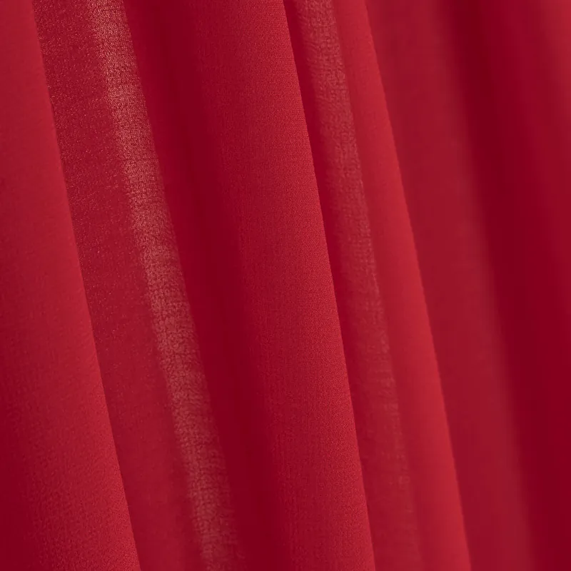 Tela de gasa chiffon de poliéster en color rojo, ideal para vestidos de fiesta y ceremonia con una caída vaporosa y elegante.
