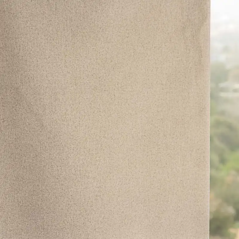 Tela black out total en beig. Tejido oscurante para cortinas ignífugas. El black out es una tela para cortinas muy opaca, gruesa y caída, con acabado simulando falso liso.