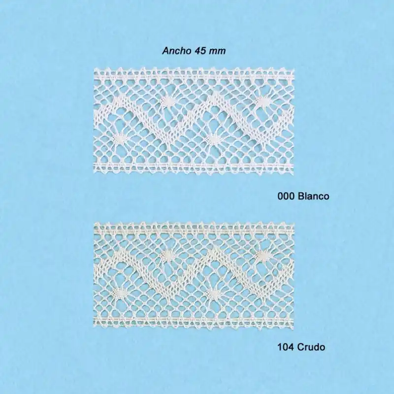 Encanto artesanal: encaje entredós de bolillo, 45mm de ancho en algodón 100%, vendido por metros.