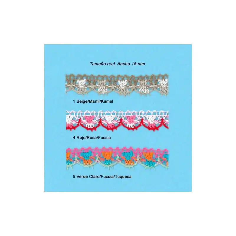 Encaje Perle multicolor. Ancho de 15mm. (Metros)
