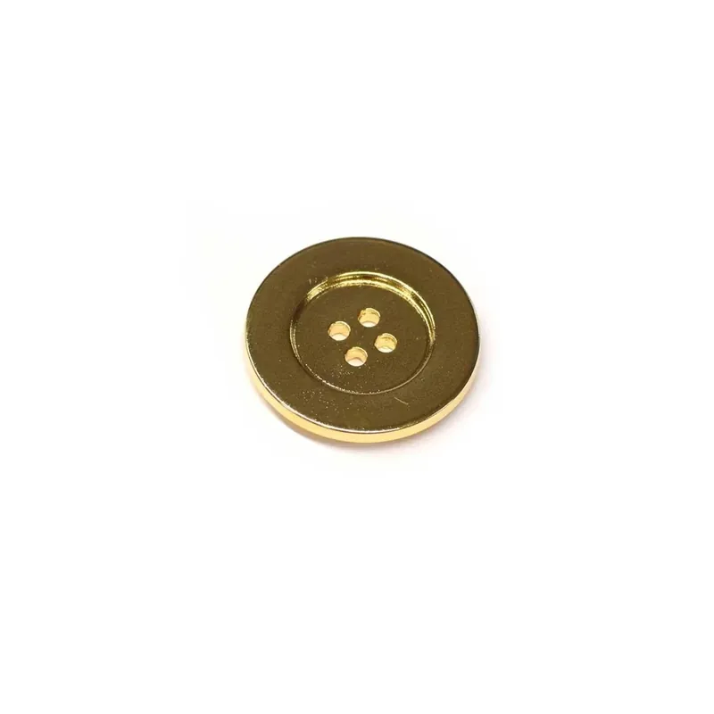 Botón en color dorado disponible en diferentes tamaños (corresponden al diámetro del botón). Hecho de nylon resistente y muy ligero. Es un botón perfecto para utizar en cualquier prenda o accesorio. Ideal para coser sobre una chaqueta, abrigo, mochila, bolsa o cualquier complemento. Su color metalizado le da un aspecto muy vistoso y llamativo. Se puede coser a cualquier tejido gracias a sus cuatro agujeros.