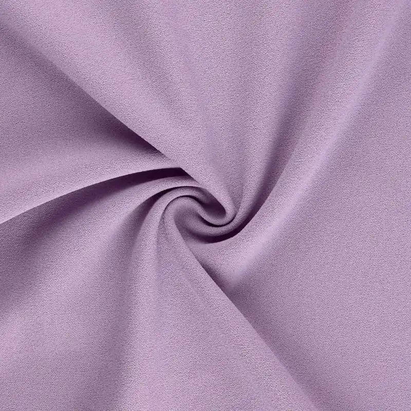 Tela en color lila de punto crepe con cuerpo y caída, conocida como Neopreno o Scuba. El neopreno es una tela de punto con un pequeño granulado muy similar al crepe. Se caracteriza por ser una tela con mucha caída y dar cierto volumen a las prendas confeccionadas. Tela ideal para confeccionar vestidos ajustados, faldas, chaquetas y otras prendas de moda.