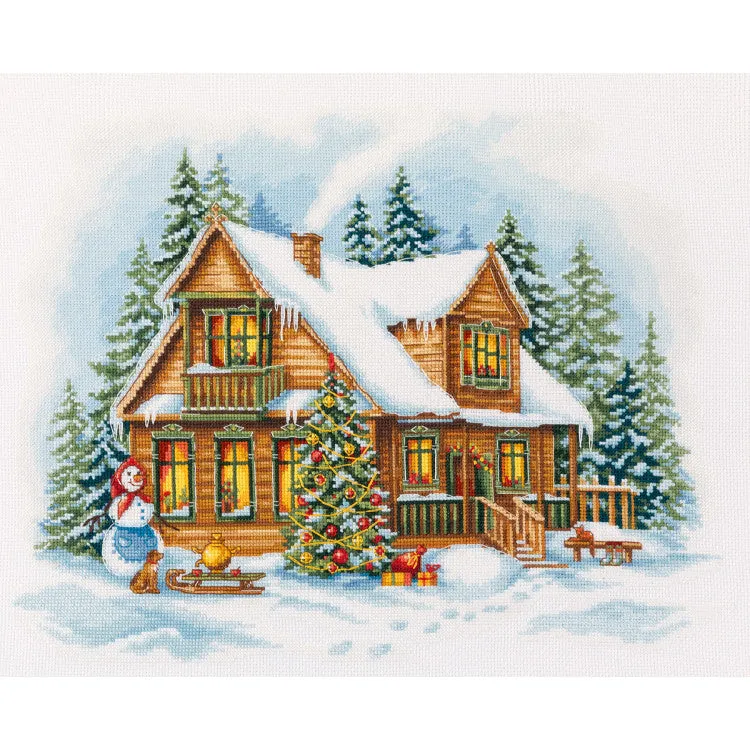 Vive la magia del invierno con el kit de punto de cruz PANNA PPR-7463 – New Year in the Village. Este encantador diseño muestra una acogedora casa de madera decorada para la Navidad, rodeada de un paisaje nevado, un muñeco de nieve y un árbol iluminado lleno de adornos. Un proyecto cálido y festivo que captura el espíritu del Año Nuevo.