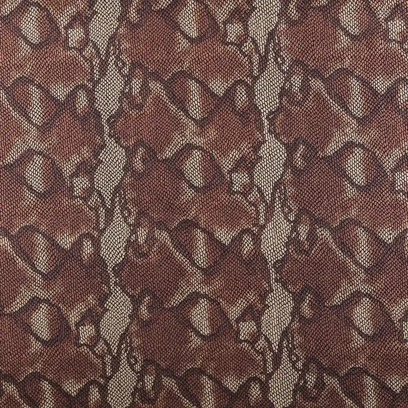 Punto grueso con lámina de serpiente color negro. Tela de punto que estira por el ancho para prendas semientalladas. El laminado de serpiente esta solo por la cara anversa no por el reverso. Este laminado hace un efecto de piel sin llegar a ser polipiel.