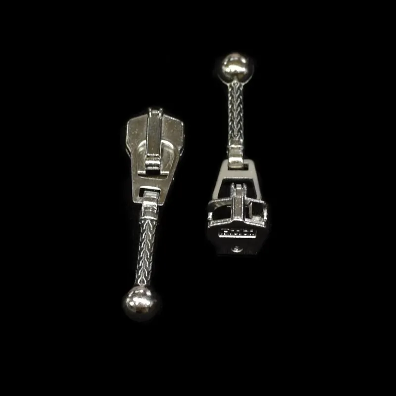 Cursor para las cremalleras metálicas o metálicas por metros en color plateado. Perfectas para cremalleras metálicas M/5. Mide aprox. 4.5cm largo y 0.5mm de ancho. IMPORTANTE: Este tipo de cursor es válido para las cremalleras metálicas o metálicas contínuas del tamaño antes mencionado.