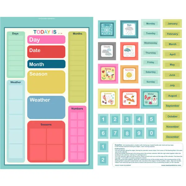 Para que sea más cómodo el intercambio de opciones en el calendario, te recomendamos usar velcro para poder intercambiar los números, los días de la semana, los meses y los dibujos del clima.