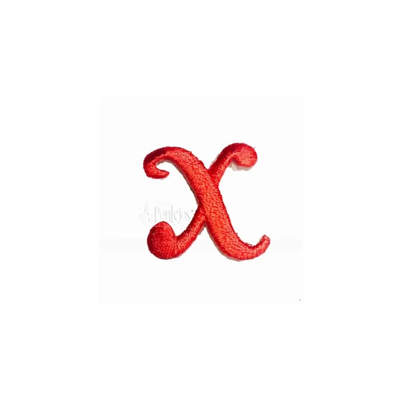 Aplicación termoadhesiva inglesa letra X en color blanco, mide aprox. 3cm largo y 2cm ancho. Precio unidad.